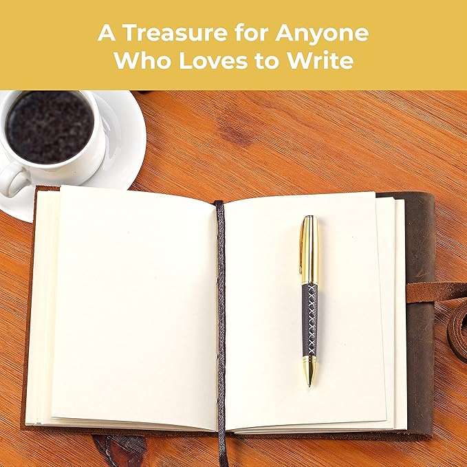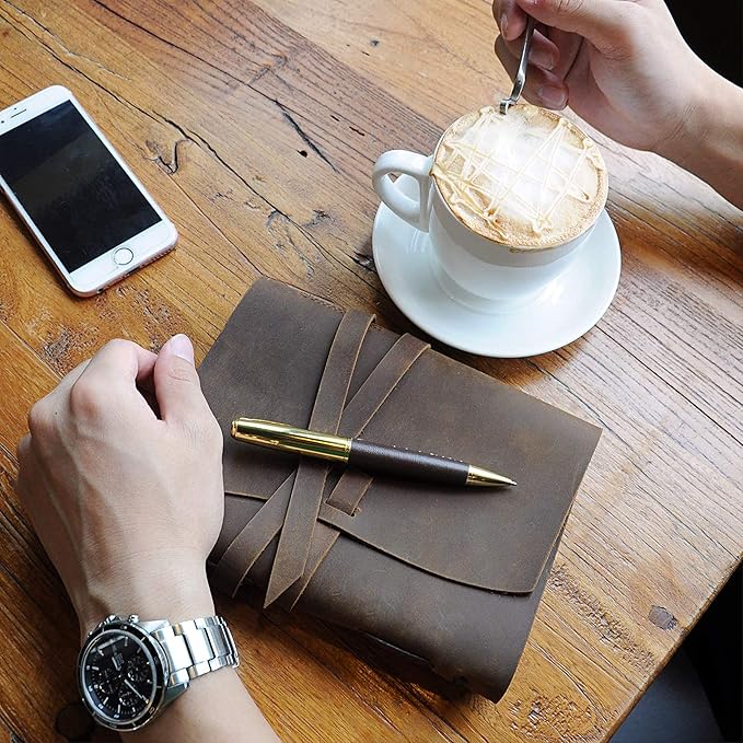• RUSTIC DESIGN: Achieves a unique and distressed look when scratched and features decorative stitching for added charm. Coated with special natural oils that make handling a joy. Plus, it has a wonderful authentic leather smell that inspires you to write daily.