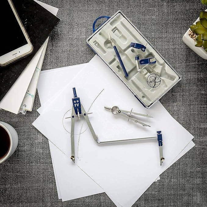 • GEOMETRY COMPASS SET CONTAINS – Two Ferocious Viking bow compasses, an extension beam, interchangeable attachments, a slip handle for pens, pencils, stylus or markers. Ideal for students in grades 9-12, vocational or college classes studying drafting, architectural design, and construction engineering