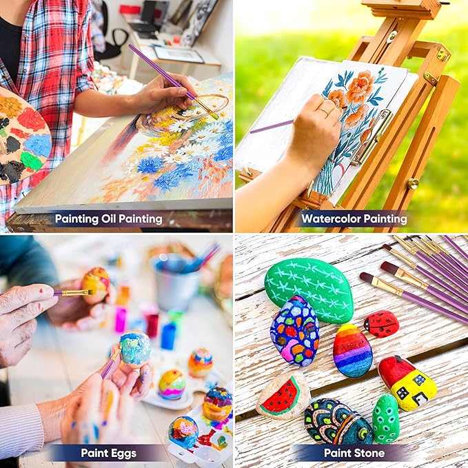 • Multi-purpose Painting Brushes: Assorted Sizes & Shapes of Paint Bush Bulk Perfect for Art Painting, Which Can Cover all Your Needs. Works Well with Art, Watercolor, Oil, Canvas, Gouache, Rocks, Enamel, Vinyl, Acrylic Painting, Body, Nail, Face Painting, Fabric, Egg, Miniature, Model, Wood, Glass, Cup, Ceramic, Fine Work, Art Class, Craft Art Painting, DIY Art Crafts etc. Acrylic Paint Brushes Allow You to do Fine Detail Painting Precisely to Reach Tight, Small Spots or Tiny Points.