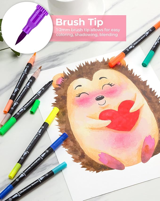 • NON-BLEEDING INK, PERFECT FOR COLORING BOOKS & JOURNALING: The real benefit of watercolor pens is that you do not have to worry about the bleeding-through problem or your paper is too thin to hold the ink. It won't bleed beyond the line or destroy the next pages. Just use Ohuhu art pens to color your coloring book and design your journals and planner.