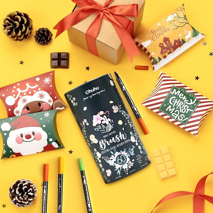 • INCLUDES 5 REPLACEMENT TIPS: Each package comes with 3 replacement brush nibs, 2 fine tips, and a pre-printed numbered color swatch card for your convenience. Ohuhu colored markers set make a perfect gift for birthdays, Christmas, Valentine’s Day, back to school, or any occasion!