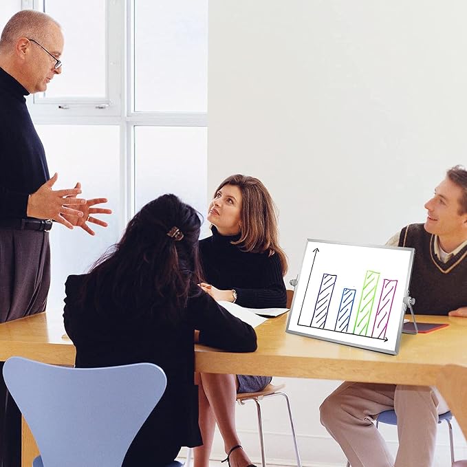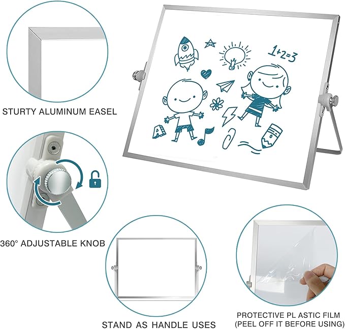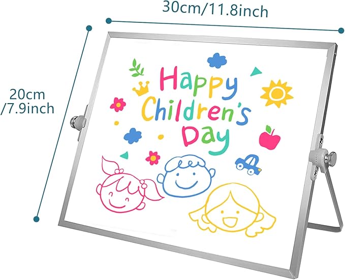 • 【Easy to Clean】:This desktop whiteboard has a smooth surface, easy to write and wipe without leaving marks. Please tear off the double-sided protective film before use. The portable erase board is perfect for home, kitchen, classroom and office
