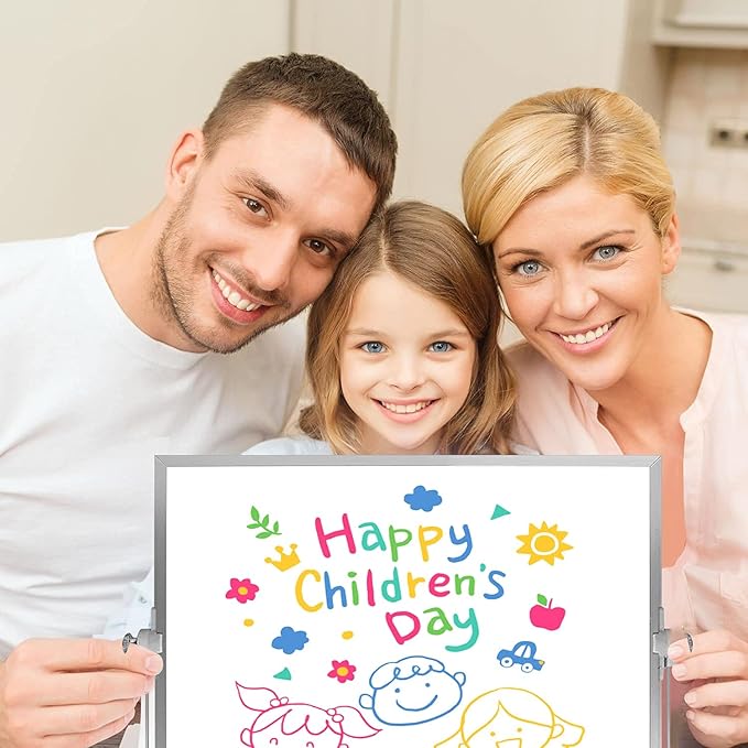 • 【Easy to Use】:This magnetic whiteboard is lightweight and easy for children to carry and move. It can be hung on the wall or placed on the desktop. It is also easy to operate with one hand, which is very suitable for learning and drawing