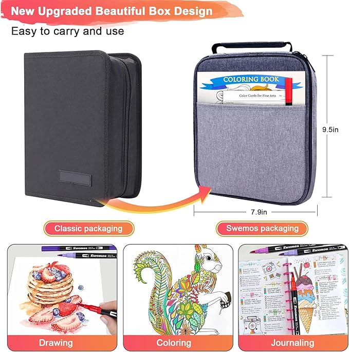 • ❤Swemos UNIQUE DETACHABLE BAG DESIGN❤: Easy to carry and use. Different from the normal black bag. These art markers are all in a beautiful zipper bag. Just disassemble markers from the bag, you will get a normal portable bag that can put in anything you want. With Handle, reusable, portable, and durable. Beautiful gift choice!