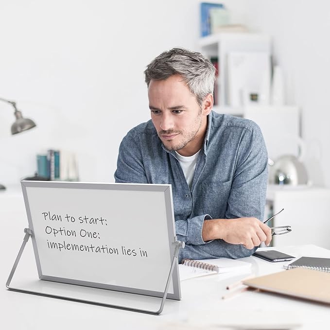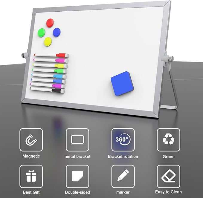 OWill Dry Erase White Board, 16inX12in Large Magnetic Desktop White Board with Stand,A3 Magnetic Whiteboard & Portable Double-Sided Whiteboard Easel for Drawing in School & Home