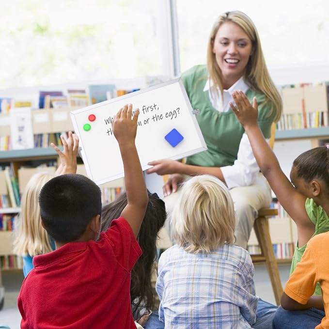 • 【Easy to Clean】:This desktop whiteboard has a smooth surface, easy to write and wipe without leaving marks. Please tear off the double-sided protective film before use. The portable erase board is perfect for home, kitchen, classroom and office