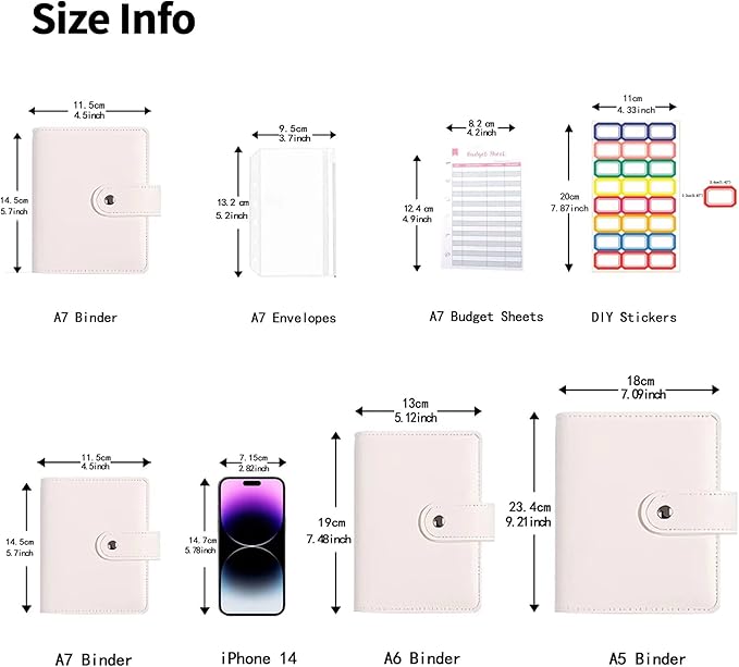 • 【What Will You Get?】One pocket size binder cover, 8 x cash zipper envelopes, 12 x budget sheets, 24 x self-adhesive labels. All parts are customized for A7 binder.
