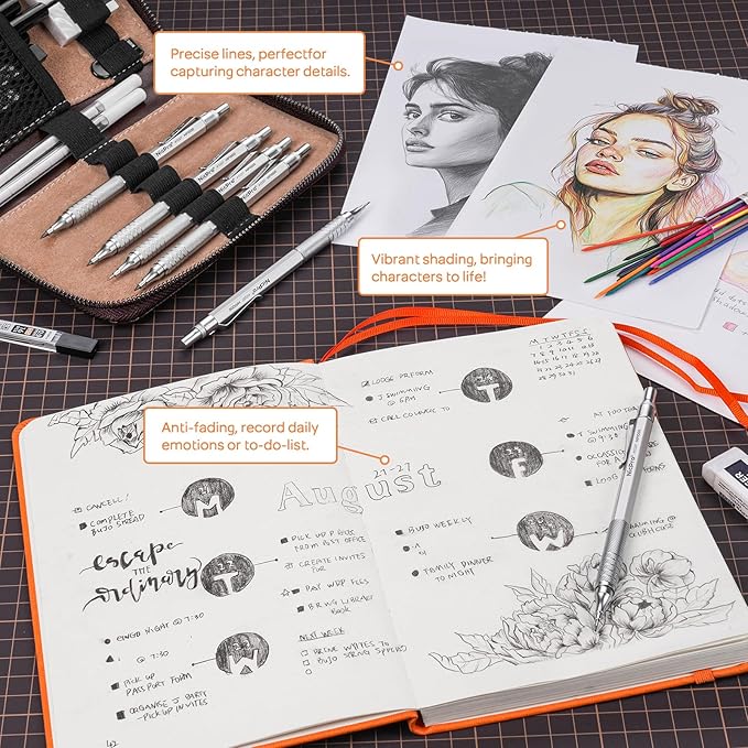 • 5. Ideals for teachers and students, artists, professionals,engineer alike. Perfect for writing, drafting, drawing, sketching or architectural working. Convenient to carry your whole mechanical pencils set everywhere