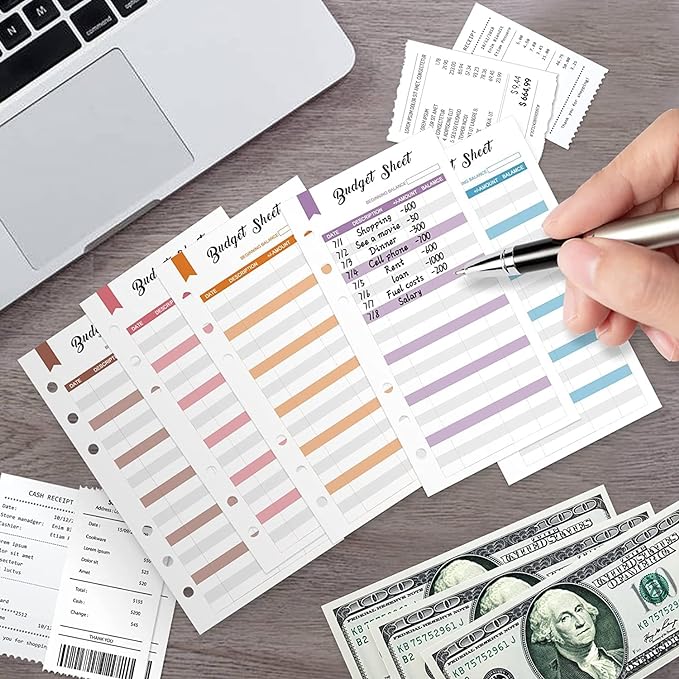 • 【Complete Set】The set also includes 8 clear zip pockets, 12 budget sheets with 6 holes, and a colorful 24-stickers. There are 24 stickers in total, with 8 different colors. You can mark and organize budget items with stickers of the same or similar colors.