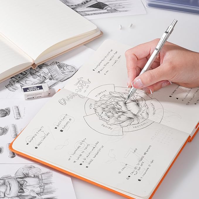 • 6 Hardness-HB 2H 2B 4H 4B 6B: This art mechanical pencil set come with several size of lead refills 0.5/0.7/0.9/2.0, the 2mm graphite pencils come with 6 hardness lead HB 2H 2B 4H 4B 6B to create different darkness, providing even more versatility to users, they are preferred by artists for creating expressive and detailed drawings with shading and gradients