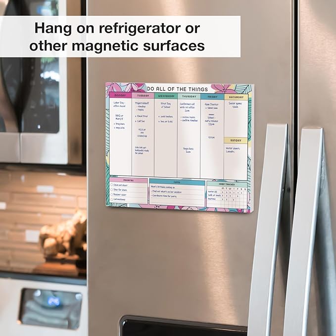 • MAGNETIC CONVENIENCE - Equipped with rear magnets, this To-Do List and Weekly Planning Pad effortlessly adheres to any magnetic surface such as refrigerators, magnetic boards, or metal cabinets. Keep your tasks prominently displayed for easy access and efficient task execution.