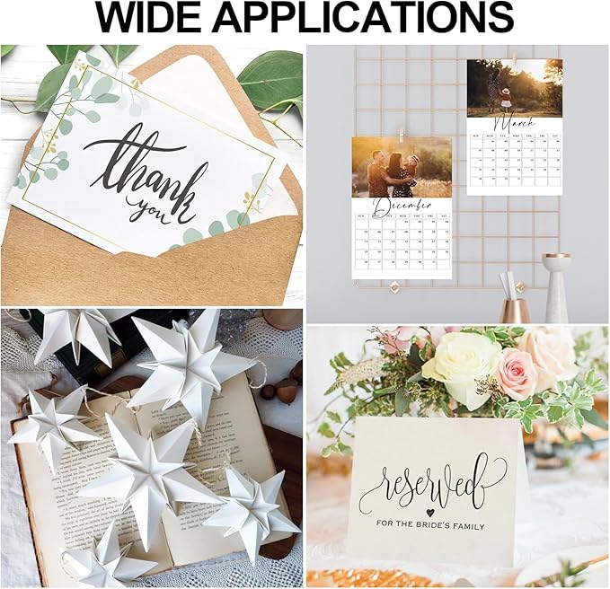 • [MULTIFUNCTIONAL APPLICATIONS] Cardstock paper is thick and strong, rendering it ideal for personal use, office and school supplies, art projects, business communications, posters, printed documents, and more. The cardstock paper holds ink well and delivers rich, vibrant colors and sharp images with perfect results. Unleash your creativity by cutting, folding, and gluing to your favorite size or shape. Card stock paper can be used to create brochures, menus, photo mats, and more.
