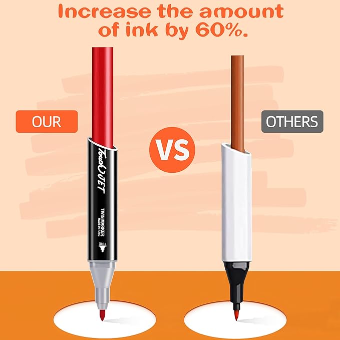 • 【DISTINCTIVE DOUBLE HEAD CONFIGURATIONS】: The square barrel design of the markers pen ensures a stable grip and no slipping during usage. It features a dual nibs design, consisting of a thick chisel and a fine tip, providing versatility. The fine tip alcohol markers are ideal for detailed marking in calligraphy, while the wide chisel tip is suitable for large area application. With two distinct nibs and a matching design, seamless color blending is achievable, enhancing the coloring efficiency.