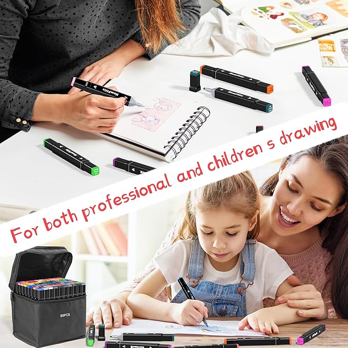 Alcohol Markers, 80 Colors Dual Tip Art Markers, Drawing Markers, Coloring Marker for Kids Sketching Adult Coloring