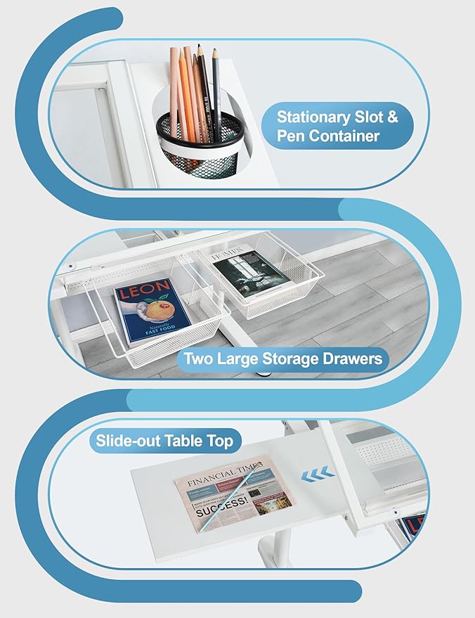 • Extended Workspace & Functionality: The desk also features an E0-grade MDF extension that pulls out to hold books or a laptop. With metal drawers and storage strips, you’ll have plenty of room for your tools and supplies. This multi-functional drafting desk is perfect for artists, designers, or anyone who loves to create!